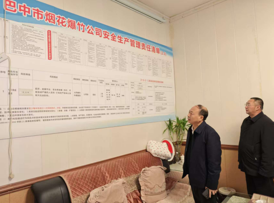 在市煙花爆竹公司,廖爵祿深入倉儲庫房、展示中心,仔細核查消防設(shè)施配備、安全管理制度落實、從業(yè)人員安全培訓等情況。他強調(diào),煙花爆竹行業(yè)安全風險高、責任重大,公司要始終把安全生產(chǎn)放在首位,切實強化安全意識,嚴格落實主體責任,常態(tài)化開展安全隱患排查整治,完善應(yīng)急處置預案,堅決落實好“工作+安全”要求,守住安全生產(chǎn)底線,確保行業(yè)安全平穩(wěn)運行。